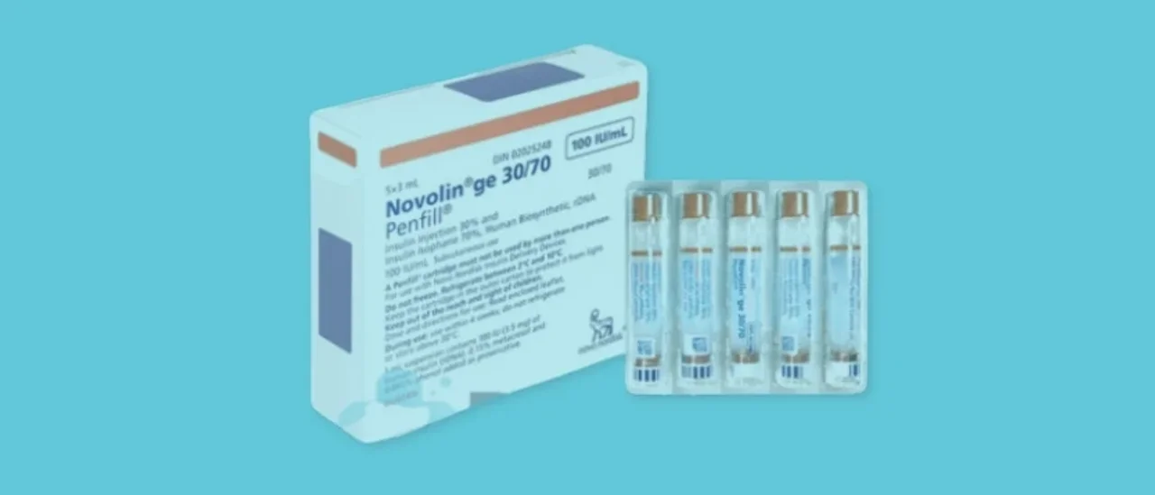 Novolin GE 30/70 Penfill Cartridge is a combination insulin product containing 70% intermediate-acting insulin isophane and 30% short-acting insulin regular. This artificial insulin mimics natural human insulin, aiding blood sugar control for individuals with diabetes. It works by facilitating the entry of glucose into cells, providing energy, and managing blood sugar levels. This medication comes in a cartridge form with a strength of 30/70, indicating the mixture ratio of regular insulin to isophane insulin.