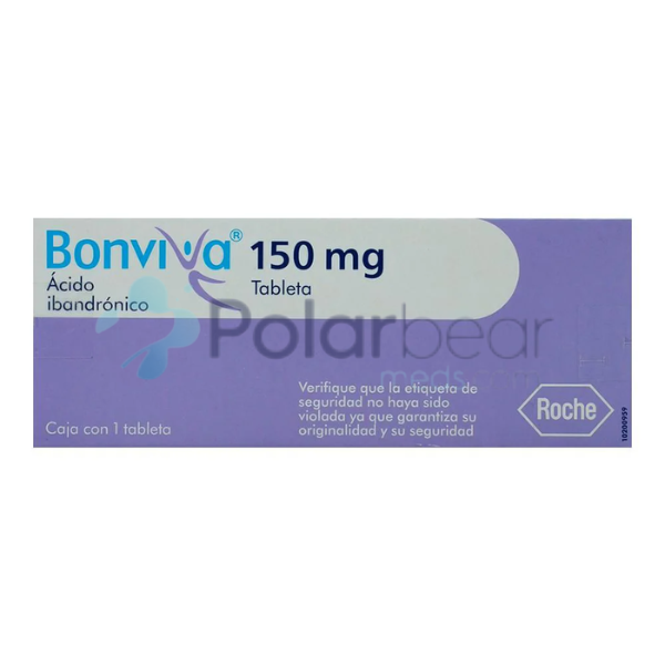 Bonviva (ibandronate) is a once-monthly bisphosphonate tablet used in the prevention and treatment of osteoporosis in women after menopause. These tablets help increase bone mineral density, strengthen bones, and reduce the risk of fractures by slowing the natural breakdown of bone. During your treatment, adequate calcium and vitamin D intake is important for achieving the best results.