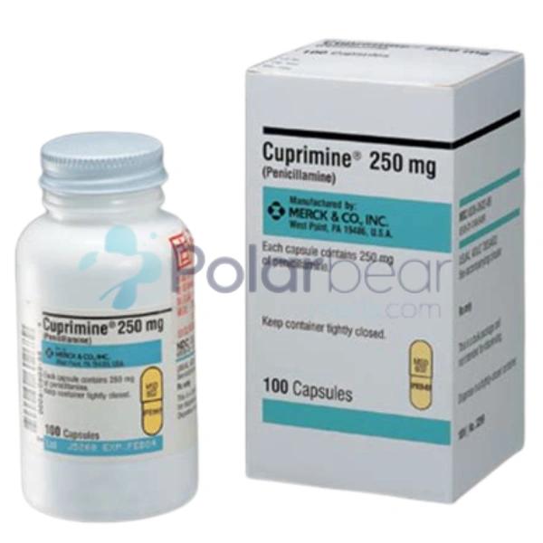 Cuprimine contains penicillamine and is primarily used for Wilson's disease, a genetic disorder that causes excess copper to accumulate in the liver, brain, and other organs. It is also used to treat cystinuria and severe, active rheumatoid arthritis when other treatments have failed. It binds to substances such as copper or cystine, allowing them to be removed through the urine. This helps prevent long-term organ damage and reduces disease complications. Because penicillamine can affect multiple body systems, treatment requires close medical supervision and regular lab monitoring. If you plan to order Cuprimine online, ensure you have a valid prescription.